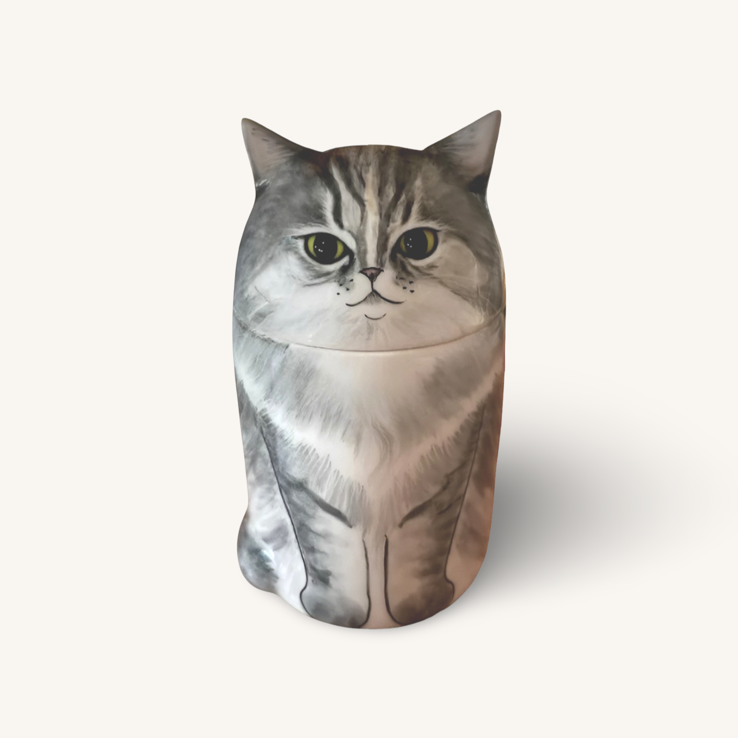 Honor your cherished cat with a custom hand-painted ceramic urn, crafted to turn your favorite memories into a timeless tribute.
